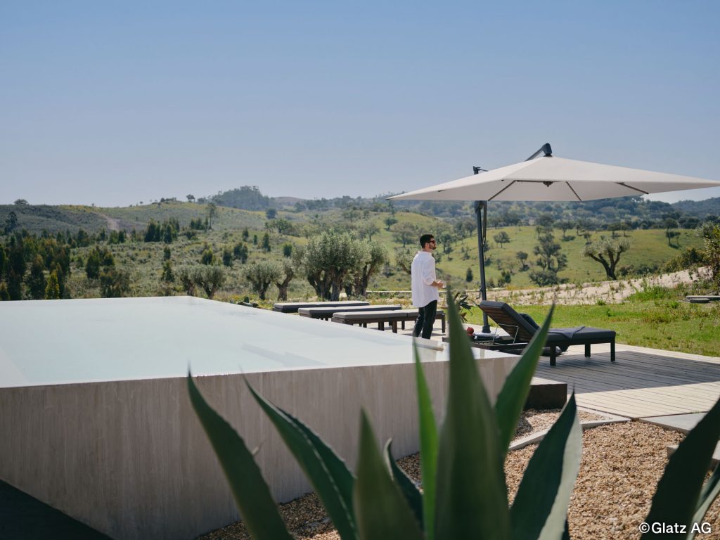 Für größere Flächen wie eine Terrasse empfehlen wir Modelle wie den SOMBRANO oder FORTINO RIVIERA. Diese Sonnenschirme bieten großzügigen Schatten und passen sich optimal größeren Flächen an. Wenn Sie einen Schirm möchten, der sich flexibel an den Sonnenstand anpasst, sind rechteckige Sonnenschirme mit einem Knickmechanismus eine ausgezeichnete Wahl. Sie können den Schirm so neigen, dass er immer den gewünschten Schutz bietet.